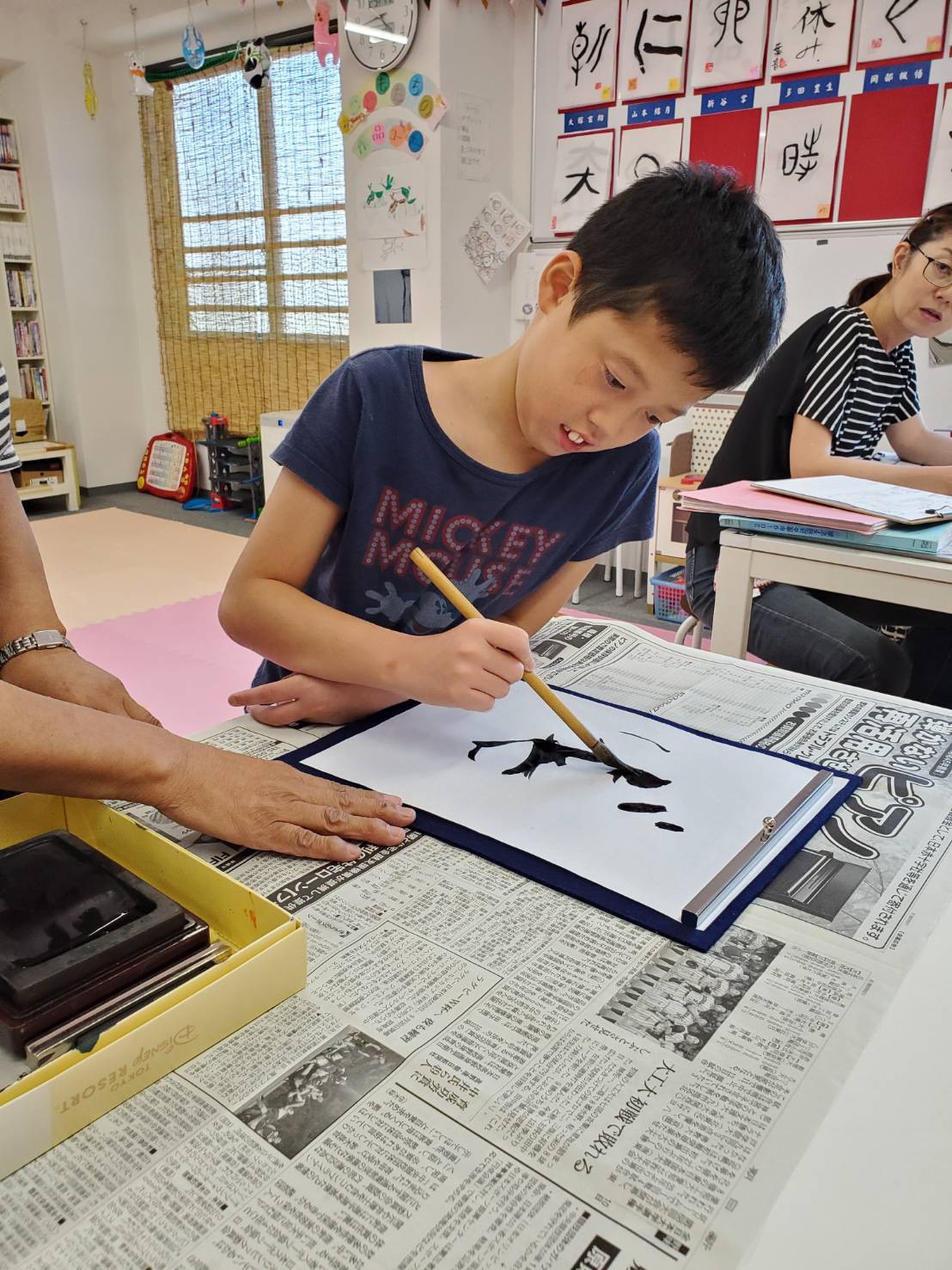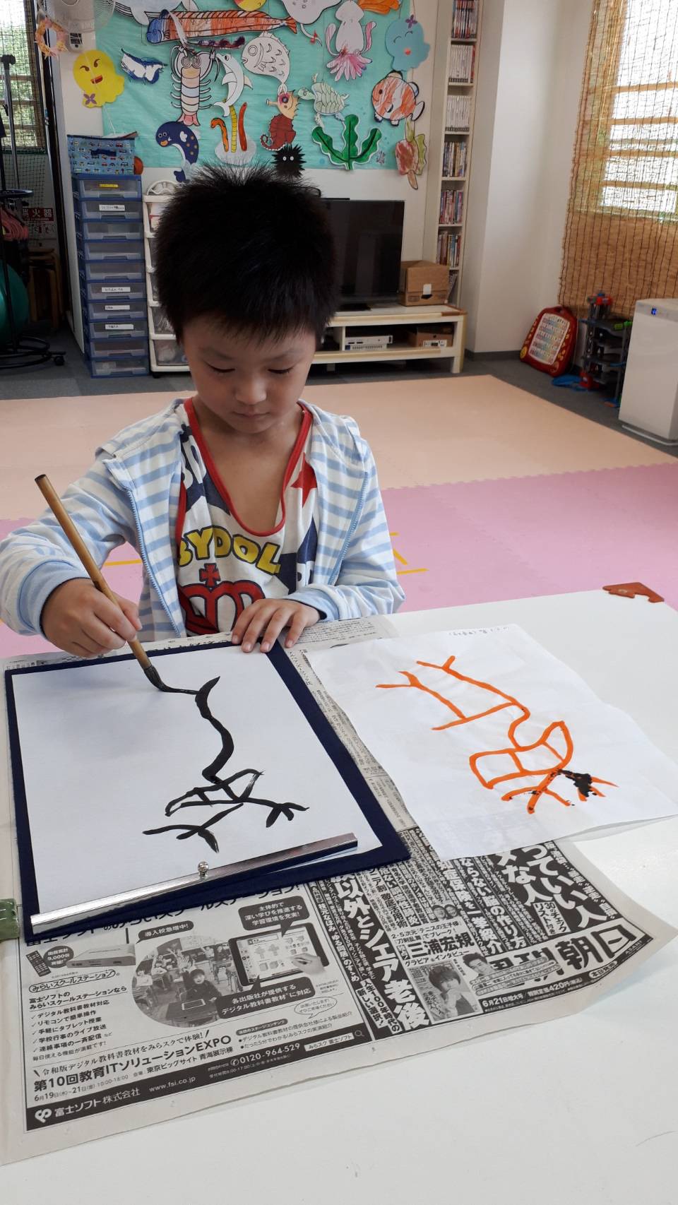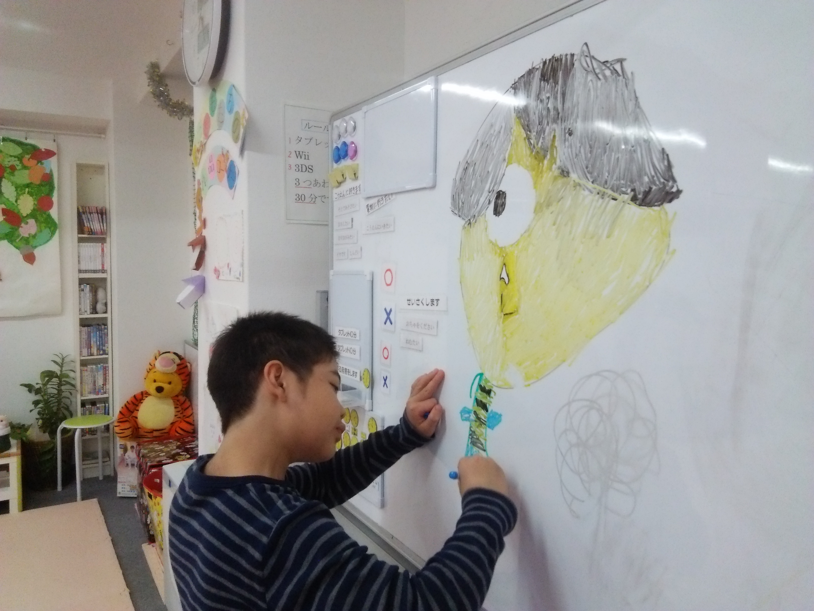 月1回、皆で壁面作りをします。 また行事ごとの製作、書道なども行っています。