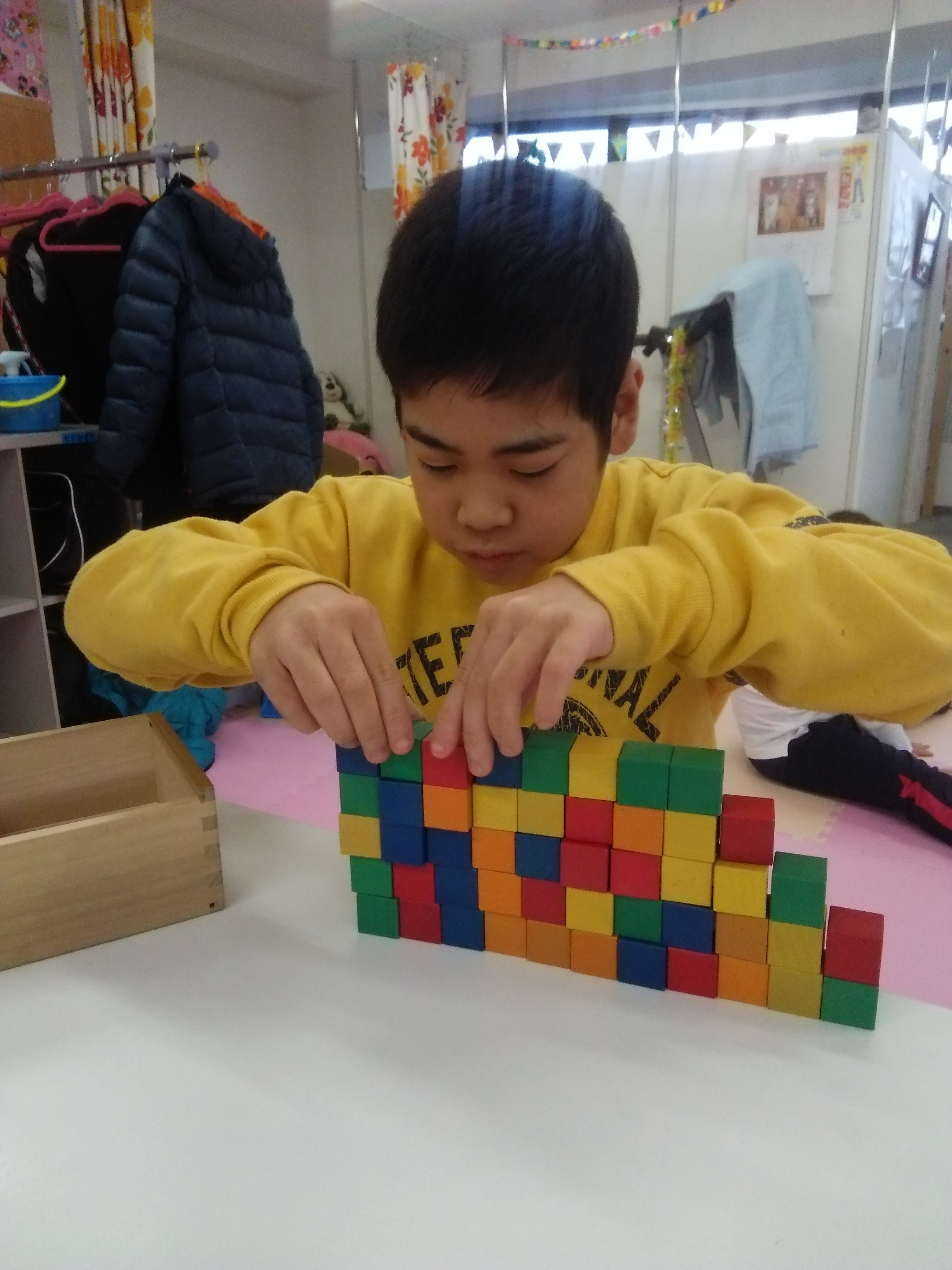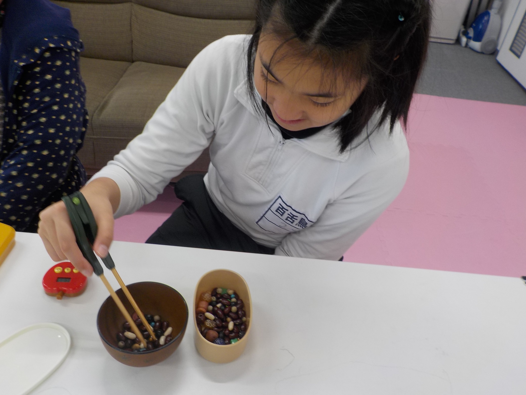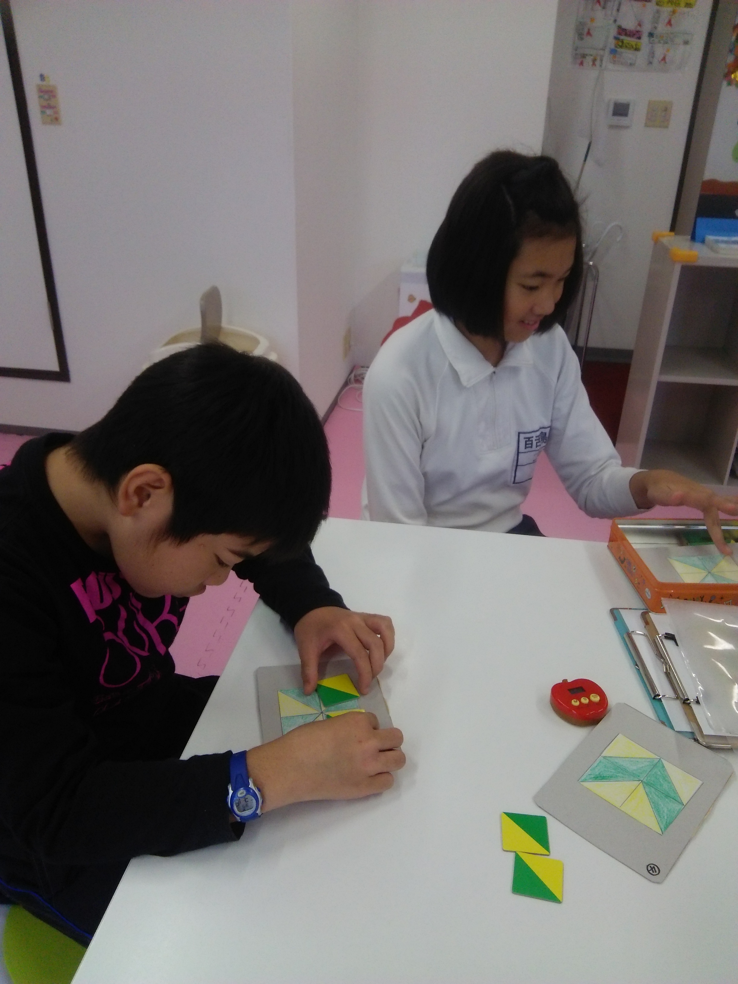 豆つまみ、タングラムなどお子様の能力に合わせた個別支援を行っています。